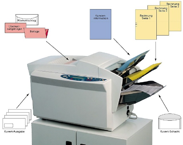 - 1 automatische Zuführstation für Beilagen bis 1 mm im Kuvert-Format